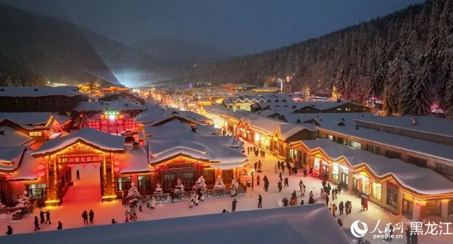 人民网牡丹江2月5日电 (尚城、张哲鑫)春节假期,中国雪乡景区被装点得“年味儿”十足,4000盏大红灯笼亮起,将古朴传统的木屋建筑衬托得喜气洋洋,“雪蘑菇”“雪蛋糕”等景观仿佛把游客们带进了“童话世界”。