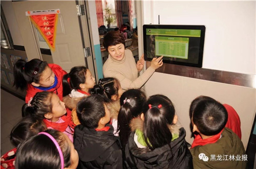 原来班级门口纸贴的课程表、作息时间表“不翼而飞”,取而代之的是一个个电子触屏“小电视”。“全校30个班级都安装了电子班牌,班级出勤、班级课表、晨检记录、串课提示、图书发布、明星榜、教师寄语、班级荣誉、滚动新闻、学校通知等信息,都可以通过电子班牌来展示。”第二小学负责教师徐登山说,作为智慧校园的一部分,电子班牌的应用,使校园、班级文化建设内容更具动态、实效,更具“现代范儿”。 据了解,该校是全省森工系统内率先安装“电子班牌”的学校。2016年该校被确定为省“教育信息化”试点学校以来,“三通两平台”发展迅速。“电子班牌”、IPAD“电子书包”、教学一体机、无线网络等项目的相继落成,实现了“校校通”到“班班通”再到“人人通”的飞跃,为学校教育教学、学生学习生活提供了全新的数字化、信息化体验。 经过7年间的企政深入合作,东京城局通信管理处与牡丹江市联通公司在互惠互赢中,一举解决了局址光纤通讯信息“最后一公里”难题,目前通讯线路全部实现光纤入户,信息网速提升到20兆,林区信息化水平在牡丹江地区处于领先地位。