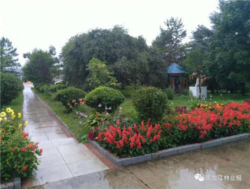 时至金秋,山明水澈,稻谷飘香。 沐浴着小兴安岭清爽的微风细雨,从鹤北重点国有林管理局出发沿东干线行驶26公里,笔直浓郁的落叶松林带挺直在公路两侧,像哨兵威武地坚守在山门入口。过了防火检查站,掩映在秀丽山坳里的四方山林场便赫然呈现眼前。 简欧式二层办公小楼,鹅黄色饰面,尖顶穹窿,精巧洋气。天井内的背景墙上镶嵌着“求实、创新、和谐、发展”八个鲜红的大字,格外引人注目。 办公区域内,鸡冠花、万寿菊、步登高、串红、野百合组成的花带、花圃、花坛,在绿篱草坪的衬托下争奇斗艳、花香四溢。环顾四周,凉亭、回廊、雕塑、甬路,曲径通幽,小桥流水,好一幅别样风情的生态美景。