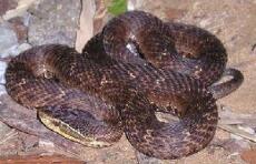 乌苏里蝮蛇(A gkist rodon ussurensis) ,俗名土球子、草上飞、七寸子。属蝰蛇科(Crotalidae) ,蝮蛇亚科,蝮蛇属(A gkist rodon) 。分布于辽宁、吉林、黑龙江。国外分布于俄罗斯远东地区,朝鲜。繁殖方式卵生。9月间产2—10仔,初生仔蛇全长172—216mm。多见于平原、浅丘或低山的杂草、灌丛、林缘、田野或石堆中。每年10月入蛰冬眠,次年5月出蛰。吃鼠、蛙及鱼,偶亦吃蜥蜴及其他蛇类。 |