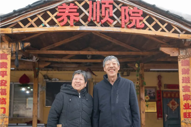 在伊春市友好区,伊春森工上甘岭林业局有限责任公司溪水林场分公司退休职工刘养顺(右)和老伴杨秋娥在自家农家院中(3月13日摄)。新华社记者 谢剑飞 摄