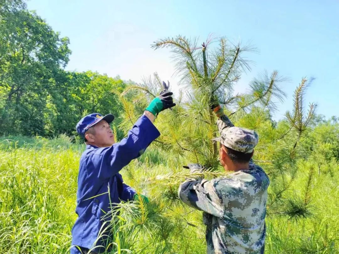 眼下,走进东方红局公司红松果林嫁接基地,嫁接的优质穗条萌生出饱满的新芽,呈现出喜人景象。技术人员带领工人们及时对果树进行剪枝、修型,保证成活的穗条可以吸收足够的养分和光照。