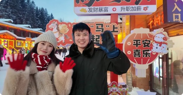 ![]() 今年的雪乡故里,将民俗喜庆氛围推向了新高潮。安塞腰鼓、东北大秧歌与二十四节令鼓的快闪表演随机上演,鼓点与欢笑声交织,为冰雪秘境增添喜庆氛围。而全新推出的 NPC 体验式抢亲节目,成为文旅体验的亮点,活动融合达斡尔族迎亲习俗与现代婚庆互动玩法,游客可化身伴郎伴娘出谋划策,或作为围观乡亲加油喝彩,在趣味关卡与红包祝福中深度感受东北婚嫁文化的热闹与温情。 “来到雪乡故里,看到了安塞腰鼓和东北扭大秧歌,非常好看,也感受到了东北最原汁原味儿的过年气息,感觉特别棒。”沈阳游客董微开心地说。 河北游客未来则对抢亲互动活动赞不绝口:“抢亲活动感觉太有意思了,就从来没见过这种场面,真的感觉很棒,很开心,来到雪乡故里这次真的太值得了。”